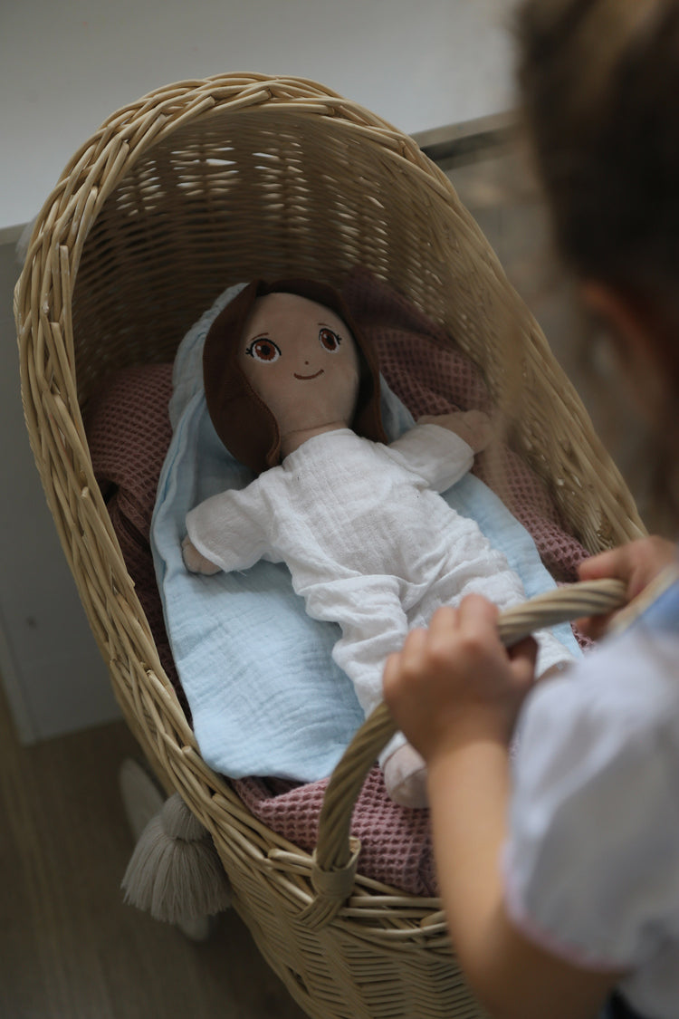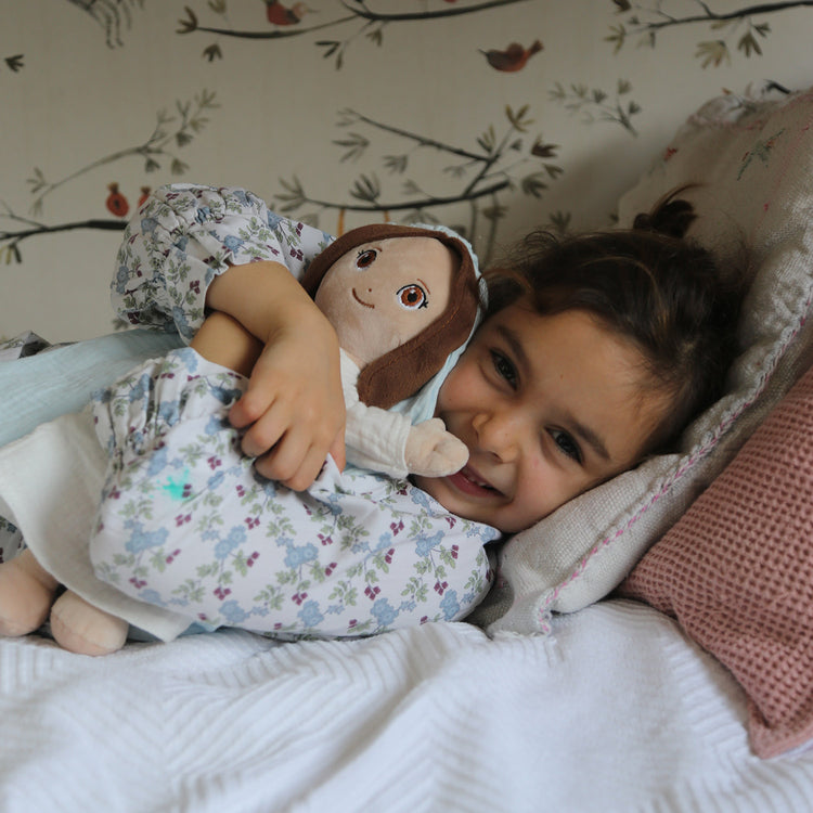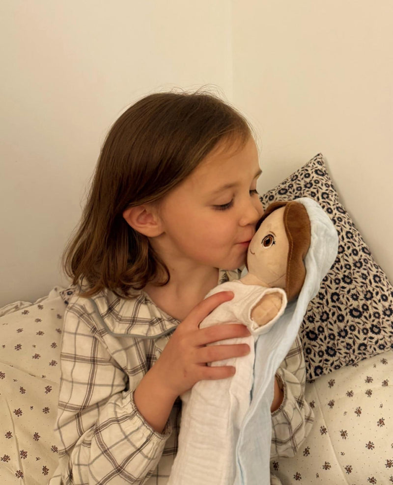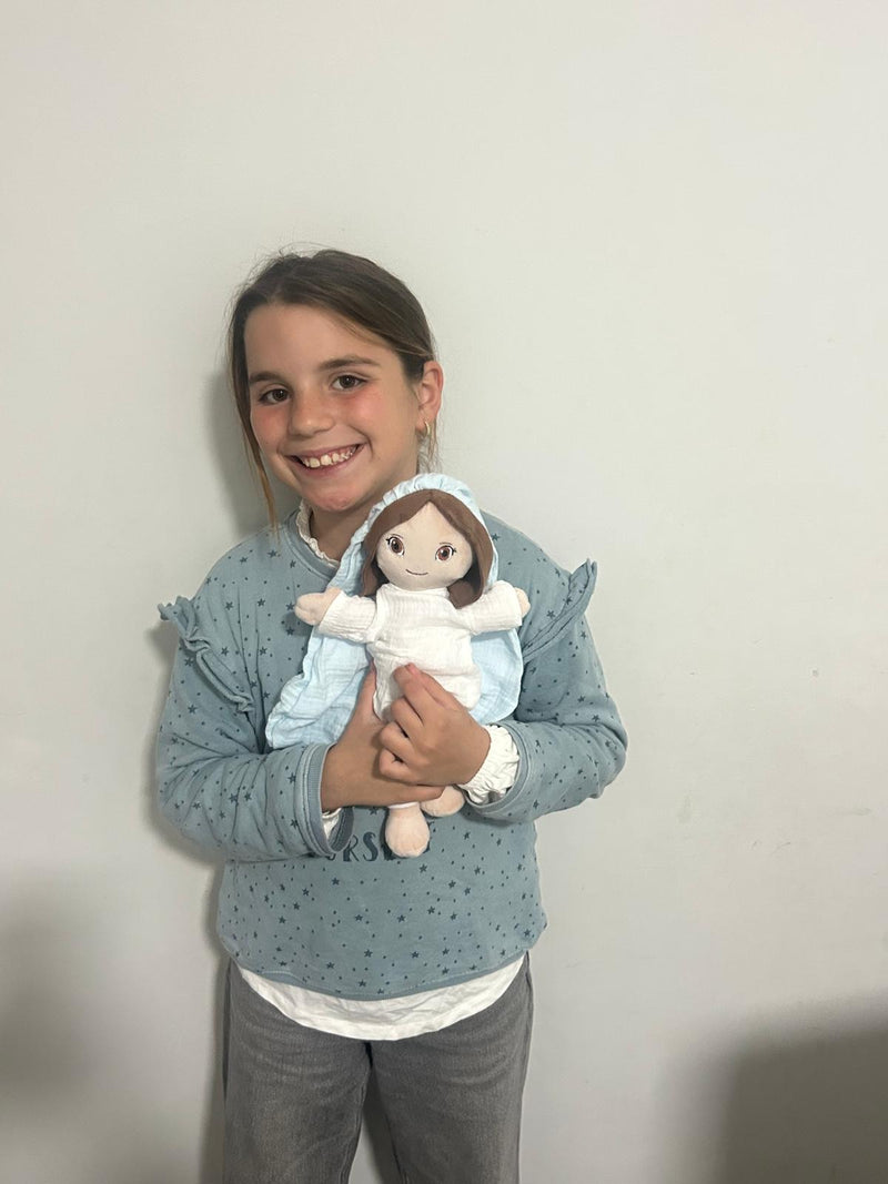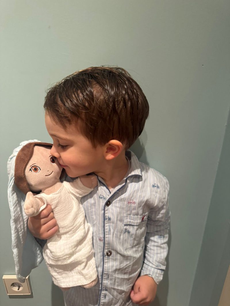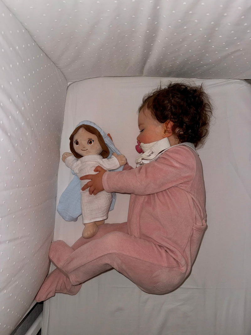 OMYGOD nació de una necesidad real en casa. La idea vino de mi hija mayor, Olivia, que con 5 años, pasaba por una etapa difícil de pesadillas constantes y un día me pidió algo que me dejó alucinada: un peluche de la Virgen para sentirse protegida. Al darnos cuenta de que no existía nada igual en el mercado, supimos que teníamos que hacerlo realidad.